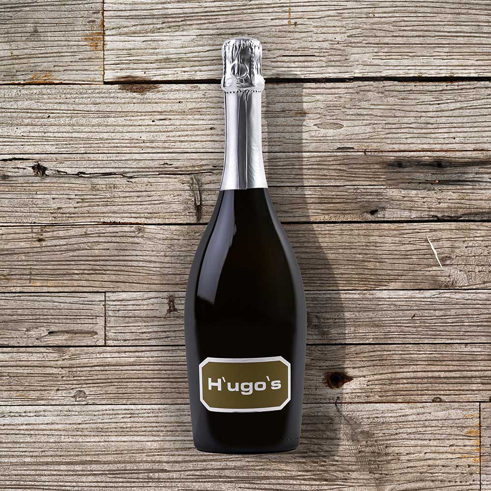 Im Glas präsentiert sich H´ugo´s Prosecco strohgelb.